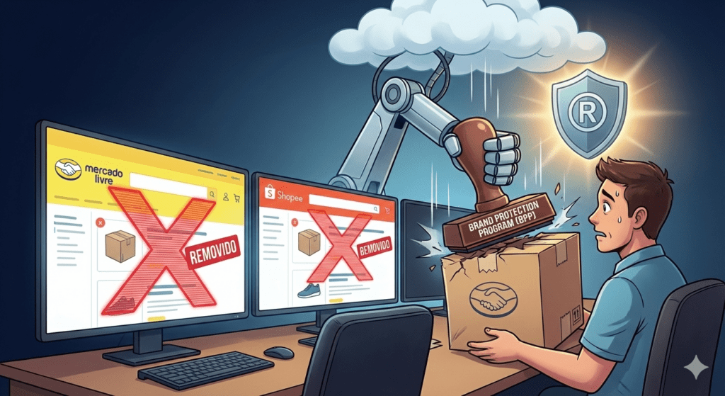 Isso porque esses marketplaces possuem programas rigorosos de Brand Protection, criados para proteger marcas registradas. Como resultado, anúncios de vendedores que não possuem registro de marca podem ser derrubados sem aviso prévio.